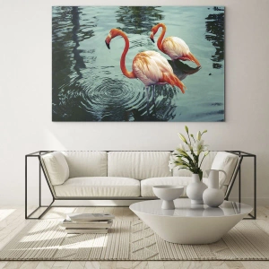 • Flamants roses, Oiseaux, Nature, Nature, Animaux, Pour le bureau, Pour le bureau, Pour la salle à manger, Pour la salle de bain, Pour le hall, Pour le salon, Pour la chambre, Orange, Vert, Carré