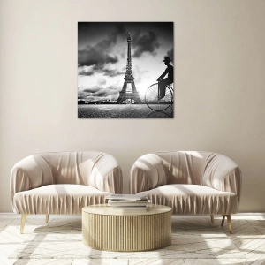 Impression sur verre - Image sur verre - Tour Eiffel avec vélo rétro en noir et blanc - 50x70cm - Nostalgie de la Belle Epoque - Décoration murale moderne pour le salon et la chambre ARTTOR