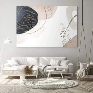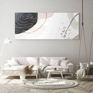 Impression sur verre - Image sur verre - Formes abstraites avec des accents dorés - 70x50cm - Tout coule - Décoration murale moderne pour le salon et la chambre ARTTOR