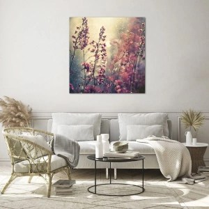 La peinture sur verre est faite sur un verre de 4 mm d'épaisseur. Les bords du verre ont une arête trapézoïdale mate. La tableau est sûr à l'utilisation et prêt à être accroché - il a des crochets en métal attachés à l'arrière du cadre et des entretoises en mousse permettant la régulation uniforme de la distance du tableau au mur.