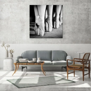 Impression sur verre - Image sur verre - Ballerines sur pointes dans un décor noir et blanc - 120x80cm - Ensemble, simple - Décoration murale moderne pour le salon et la chambre ARTTOR