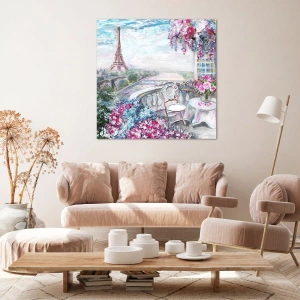 En arrière-plan, la majestueuse Tour Eiffel domine le paysage parisien, créant une atmosphère romantique et inspirante. Des couleurs vives, des détails délicats et une composition harmonieuse apportent paix et sophistication à l'intérieur, s'intégrant parfaitement aux compositions classiques, modernes ou bohèmes.