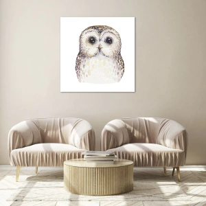 Impression sur verre - Image sur verre - Adorable hibou sur fond blanc dans un style aquarelle - 50x70cm - Regarde-moi dans les yeux - Décoration murale moderne pour le salon et la chambre ARTTOR