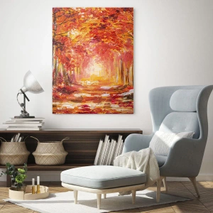 Impression sur verre - Image sur verre - Forêt d'automne aux tons cuivrés et dorés - 70x100cm - Forêt de cuivre - Décoration murale moderne pour le salon et la chambre ARTTOR