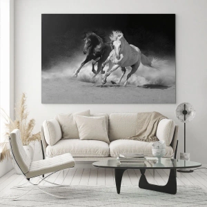 Impression sur verre - Image sur verre - Chevaux au galop en noir et blanc - 70x100cm - Galop de la liberté - Décoration murale moderne pour le salon et la chambre ARTTOR