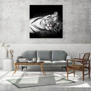 Les détails de la fourrure du tigre sont reproduits avec précision, soulignant sa nature sauvage et sa beauté. Le contraste entre le noir et le blanc crée un effet visuel élégant et intemporel qui attire le regard et ajoute de la profondeur. Le regard intense du tigre symbolise la puissance, la détermination et la force indomptée de la nature.