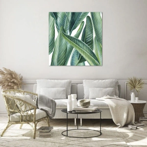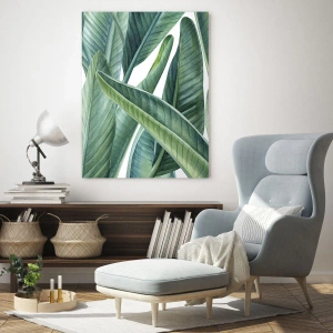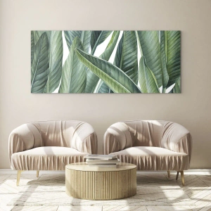 Impression sur verre - Image sur verre - Feuilles vertes dans un style botanique minimaliste - 80x120cm - La nature face à elle-même - Décoration murale moderne pour le salon et la chambre ARTTOR
