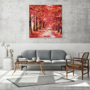 Impression sur verre - Image sur verre - Une ruelle pittoresque aux couleurs d'automne dans le style impressionniste - 120x50cm - Impression d'automne - Décoration murale moderne pour le salon et la chambre ARTTOR