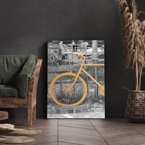 Impression sur toile - Photographie artistique d'un vélo jaune sur fond noir et blanc - Photographie artistique d'un vélo jaune sur fond noir et blanc