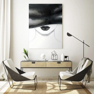 Impression sur verre - Image sur verre - Un portrait subtil d'une femme au visage couvert dans un style monochrome. - 80x120cm - Un mystère sensuel - Décoration murale moderne pour le salon et la chambre ARTTOR