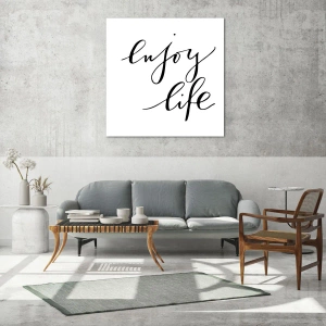 Impression sur verre - Image sur verre - Inscription minimaliste « Profitez de la vie » en noir sur fond blanc - 120x80cm - Rien à ajouter.... - Décoration murale moderne pour le salon et la chambre ARTTOR