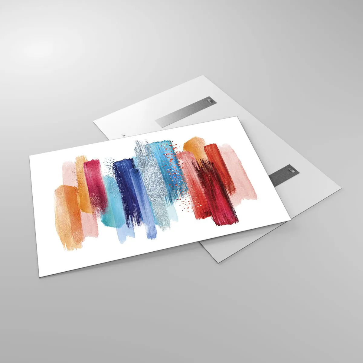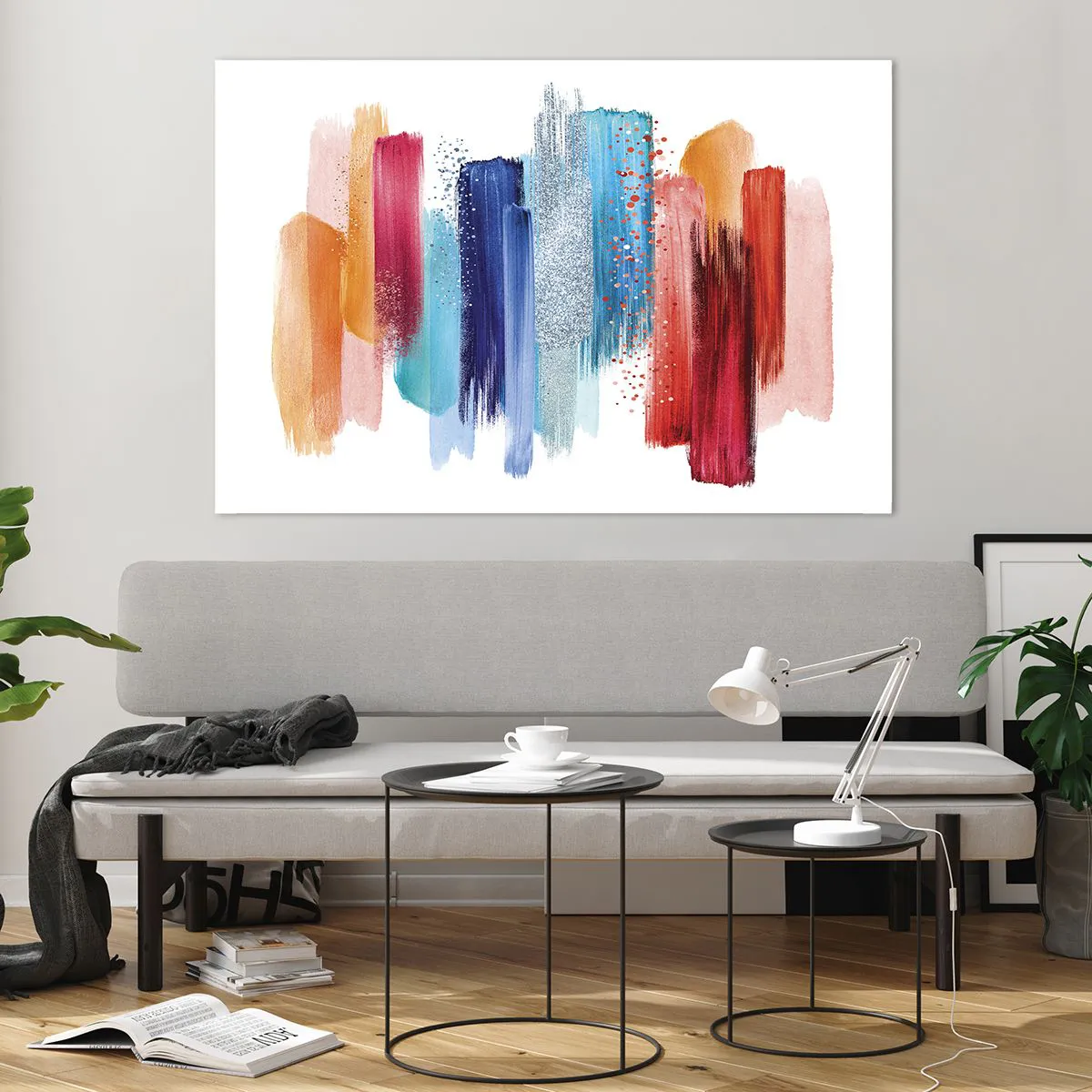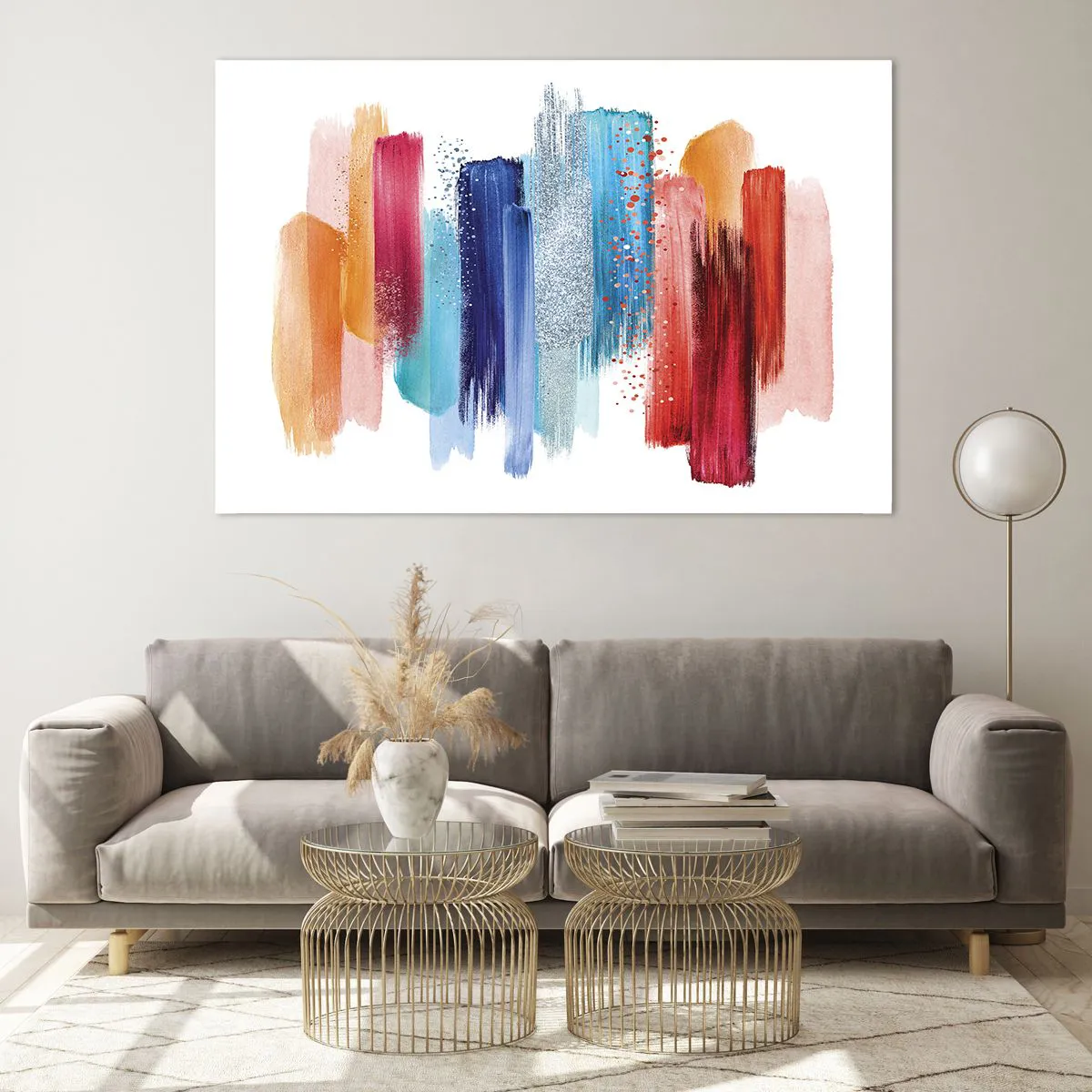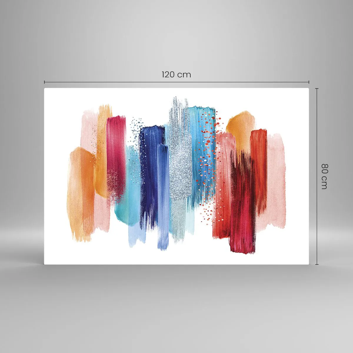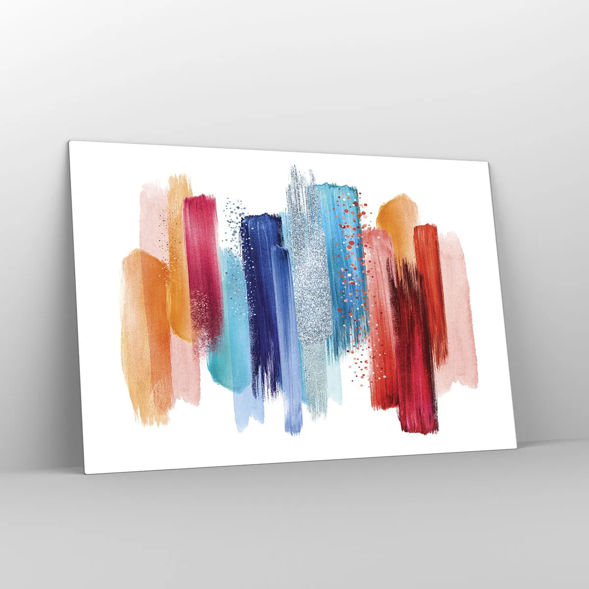 Impression sur verre - Image sur verre - Composition abstraite de coups de pinceau colorés - 120x80cm - En haut et en bas - Décoration murale moderne pour le salon et la chambre ARTTOR