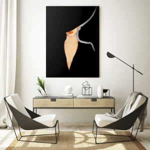 Impression sur verre - Image sur verre - Un portrait subtil d'une femme sur fond noir - 50x70cm - Élégance et style - Décoration murale moderne pour le salon et la chambre ARTTOR