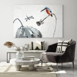 La peinture sur verre est faite sur un verre de 4 mm d'épaisseur. Les bords du verre ont une arête trapézoïdale mate. La tableau est sûr à l'utilisation et prêt à être accroché - il a des crochets en métal attachés à l'arrière du cadre et des entretoises en mousse permettant la régulation uniforme de la distance du tableau au mur.