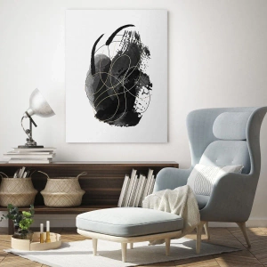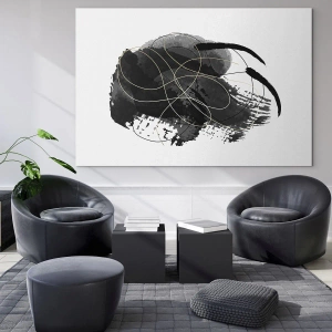 Impression sur verre - Image sur verre - Une composition abstraite de noir avec des accents dorés - 120x80cm - Fait de noir - Décoration murale moderne pour le salon et la chambre ARTTOR