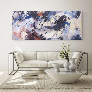 • Un tableau sur verre représentant une peinture abstraite aux couleurs vives. Une décoration expressive parfaite pour les intérieurs modernes.