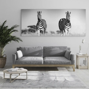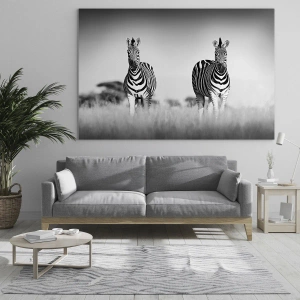 - Ce tableau représente un couple de zèbres en noir et blanc, sur fond d'herbe, dans leur habitat naturel. Un choix idéal pour les intérieurs privilégiant la nature et le minimalisme. Ce produit est réalisé sur verre.