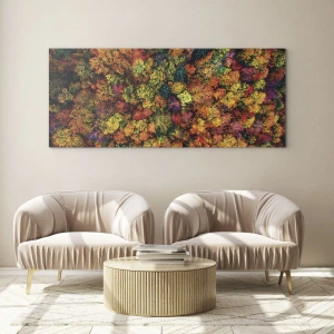 Impression sur verre - Image sur verre - Couronnes d'arbres colorées dans la palette d'automne - 120x50cm - Bouquet d'arbres automnal - Décoration murale moderne pour le salon et la chambre ARTTOR