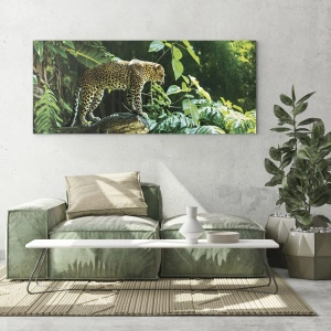 Impression sur verre - Image sur verre - Léopard sur un rocher dans la jungle tropicale - 100x70cm - À la chasse? - Décoration murale moderne pour le salon et la chambre ARTTOR