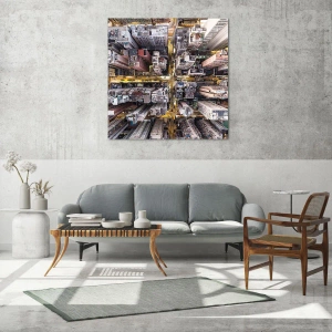 - Cette peinture sur verre représente une vue nocturne de la métropole animée. Les rues illuminées et les impressionnants gratte-ciel créent une composition dynamique et énergique, parfaite pour les intérieurs modernes.