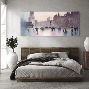 Impression sur verre - Image sur verre - Paysage urbain pluvieux - 70x50cm - Dans une brume pluvieuse - Décoration murale moderne pour le salon et la chambre ARTTOR