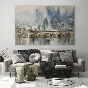 Impression sur verre - Image sur verre - Vue à l'aquarelle du pont et des toits de la ville - 140x50cm - Londres dans toute sa splendeur - Décoration murale moderne pour le salon et la chambre ARTTOR