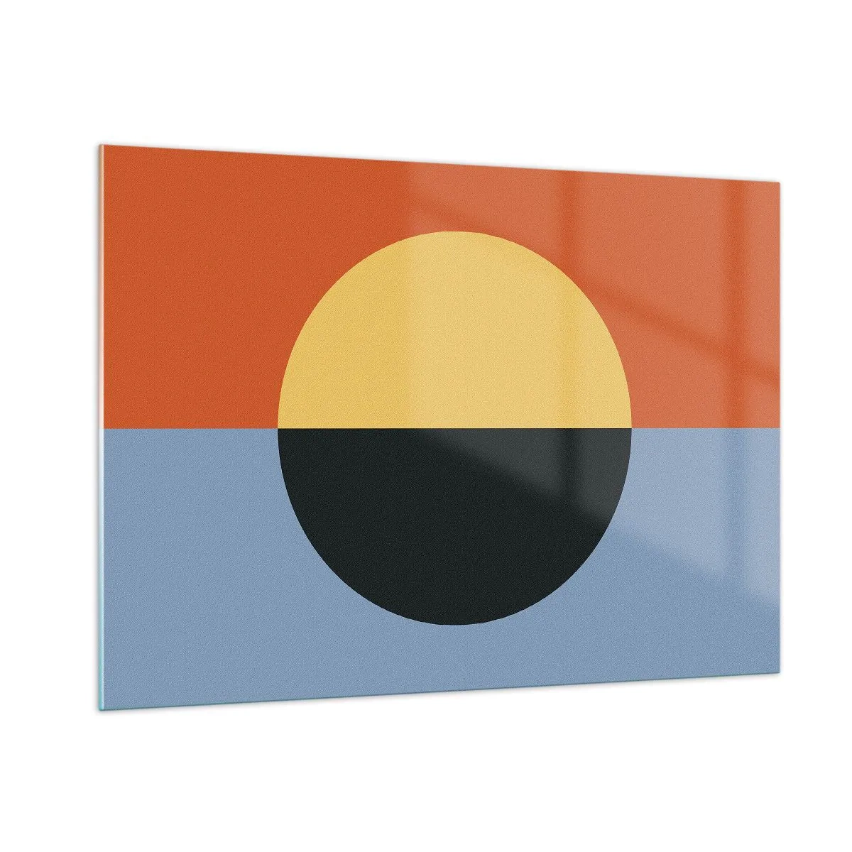 Impression sur verre - Image sur verre - Composition abstraite avec un cercle dans des tons chauds et froids - 100x70cm - Composition de chaleur et de fraîcheur - Décoration murale moderne pour le salon et la chambre ARTTOR