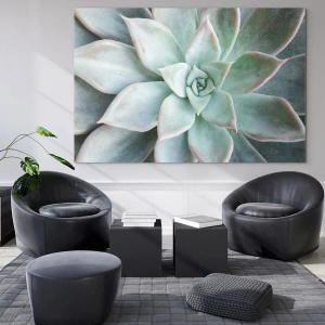 Les succulentes dans une subtile nuance gris-vert sont le motif principal du tableau « Cœur du Désert ». Les feuilles de la plante créent une harmonie pleine de paix et d'élégance. La peinture sur verre apporte la subtilité de la nature à l'espace, la transposant à l'intérieur.