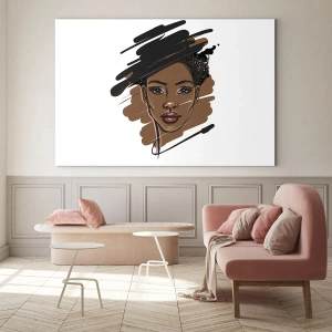Impression sur verre - Image sur verre - Portrait d'une femme noire dans un style de croquis de mode - 70x50cm - Doux comme le chocolat - Décoration murale moderne pour le salon et la chambre ARTTOR