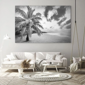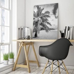 Décoration murale - Quand on aspire à la solitude... - Palmier noir et blanc sur une plage déserte sous un ciel nuageux