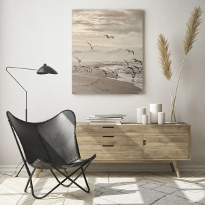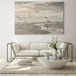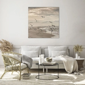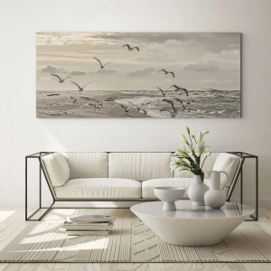 Impression sur verre - Image sur verre - Une mouette en vol au-dessus d'un paysage balnéaire - 120x50cm - Le bruit de la mer, le chant des oiseaux - Décoration murale moderne pour le salon et la chambre ARTTOR