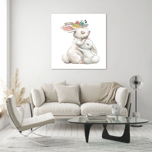 Impression sur verre - Image sur verre - Deux lapins câlins aux couleurs pastel - 120x80cm - Maman irremplaçable - Décoration murale moderne pour le salon et la chambre ARTTOR