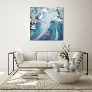 Impression sur verre - Image sur verre - Tourbillons abstraits dans des tons de bleu et de blanc - 120x50cm - Courants bleus - Décoration murale moderne pour le salon et la chambre ARTTOR