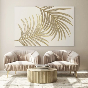 Impression sur verre - Image sur verre - Feuilles de palmier dorées sur fond clair dans un style minimaliste - 80x120cm - Palme d'or! - Décoration murale moderne pour le salon et la chambre ARTTOR