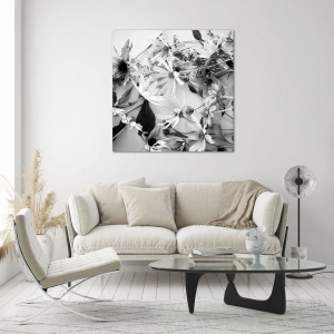 Impression sur verre - Image sur verre - Fleurs noires et blanches dispersées dans un arrangement artistique - 50x70cm - Non-un bouquet de fleurs - Décoration murale moderne pour le salon et la chambre ARTTOR