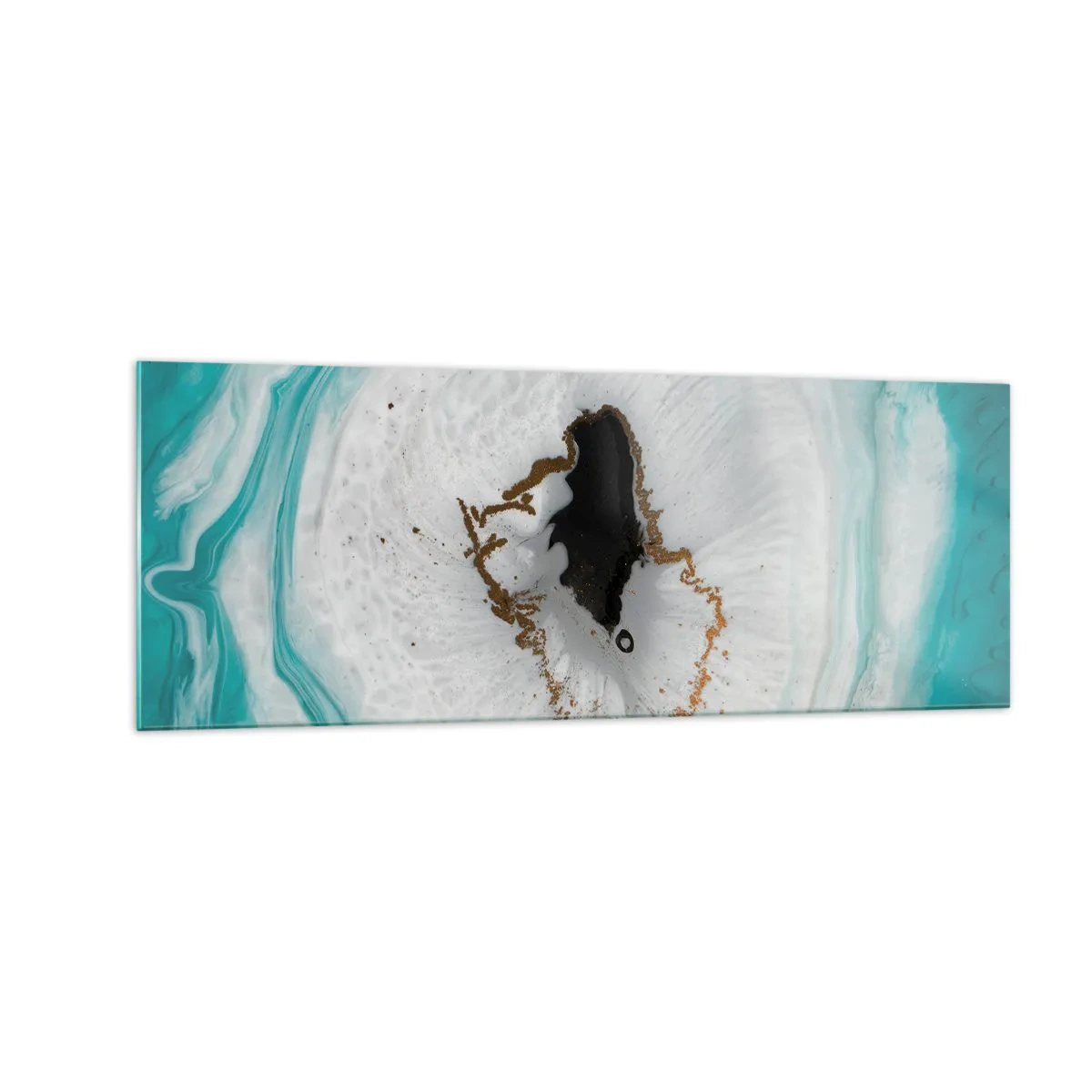 Impression sur verre - Image sur verre - Motif de géode abstrait dans des tons de turquoise, blanc et or - 140x50cm - Pénétrer à l'intérieur - Décoration murale moderne pour le salon et la chambre ARTTOR
