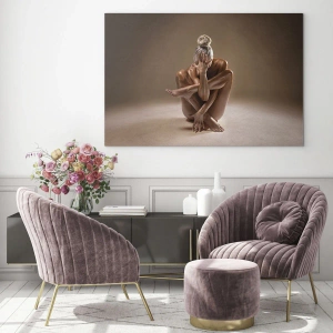 Impression sur verre - Image sur verre - Une femme sensuelle dans une pose artistique sur un fond d'ombre. - 120x80cm - Unité du corps et de l'âme - Décoration murale moderne pour le salon et la chambre ARTTOR