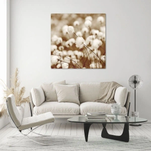 Impression sur verre - Image sur verre - Un champ d'herbe duveteuse aux tons sépia - 50x70cm - Tige moelleuse - Décoration murale moderne pour le salon et la chambre ARTTOR
