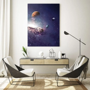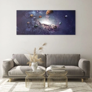 Impression sur verre - Image sur verre - Planètes dans une galaxie avec une nébuleuse en arrière-plan - 70x100cm - Système de danse solaire - Décoration murale moderne pour le salon et la chambre ARTTOR