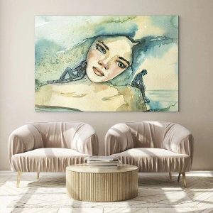 La peinture sur verre est faite sur un verre de 4 mm d'épaisseur. Les bords du verre ont une arête trapézoïdale mate. La tableau est sûr à l'utilisation et prêt à être accroché - il a des crochets en métal attachés à l'arrière du cadre et des entretoises en mousse permettant la régulation uniforme de la distance du tableau au mur.