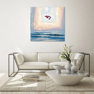 Impression sur verre - Image sur verre - Saut surréaliste au-dessus de la mer dans le cadre - 70x100cm - Vers une autre dimension - Décoration murale moderne pour le salon et la chambre ARTTOR