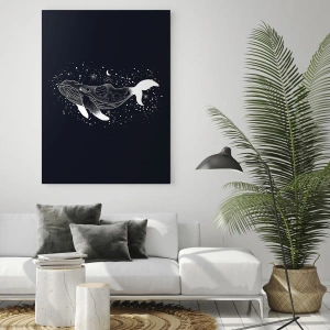 Impression sur verre - Image sur verre - Une illustration graphique d'une baleine dans un style de l'ère spatiale. - 160x50cm - Dans l'océan de l'univers - Décoration murale moderne pour le salon et la chambre ARTTOR