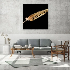 Impression sur verre - Image sur verre - Plume dorée sur fond noir - 80x120cm - Sans porte-plume - Décoration murale moderne pour le salon et la chambre ARTTOR