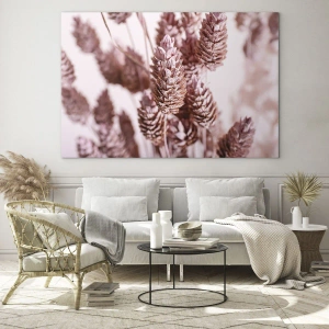 Impression sur verre - Image sur verre - Gros plan sur les délicats épis roses des graminées ornementales - 70x100cm - Apparemment discret - Décoration murale moderne pour le salon et la chambre ARTTOR