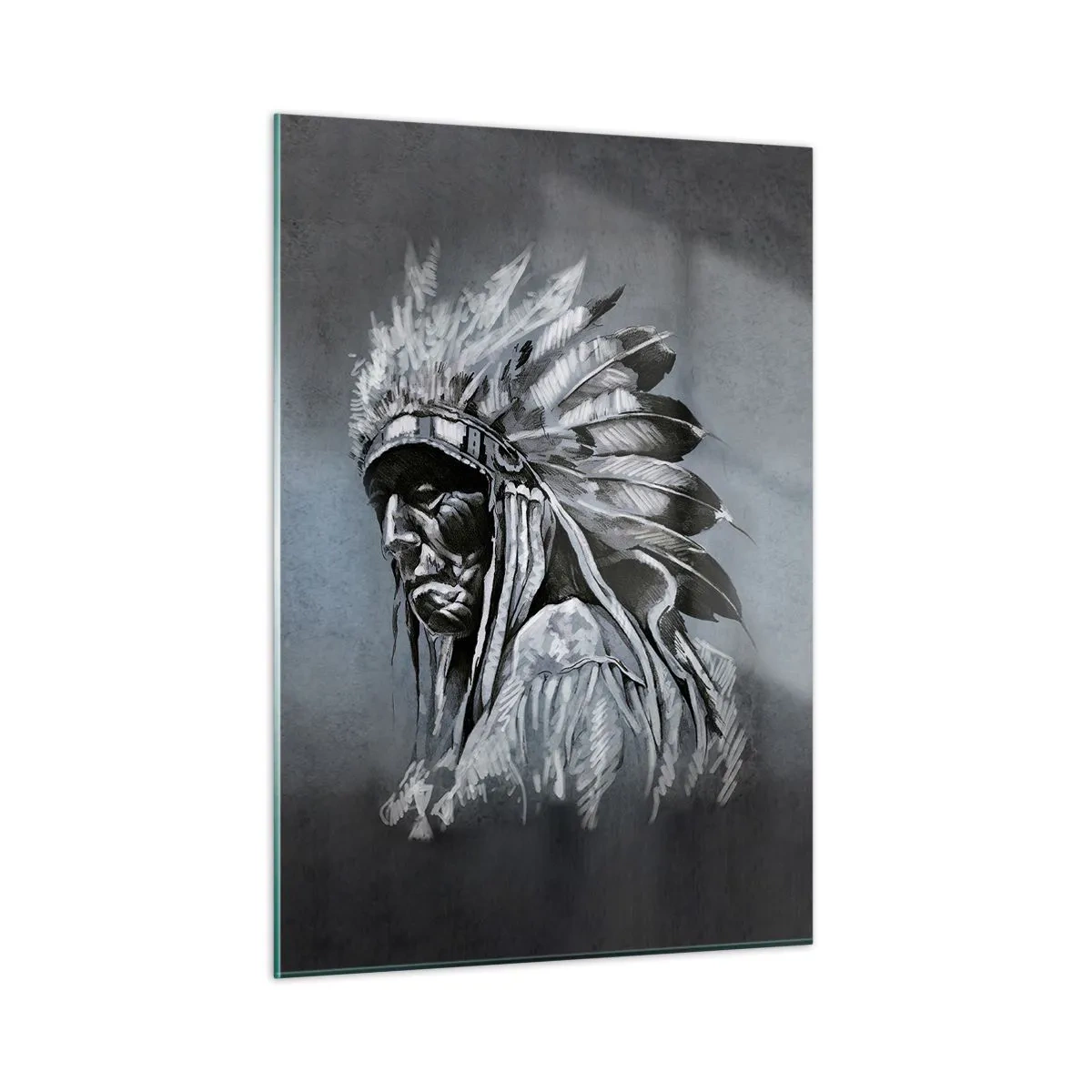Impression sur verre - Image sur verre - Portrait d'un homme avec une coiffe de plumes sur un fond gris foncé - 50x70cm - Retour aux sources - Décoration murale moderne pour le salon et la chambre ARTTOR