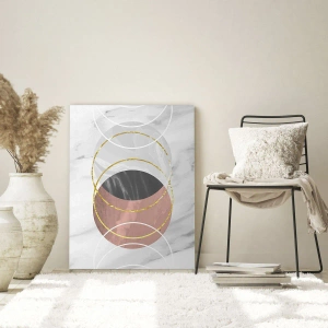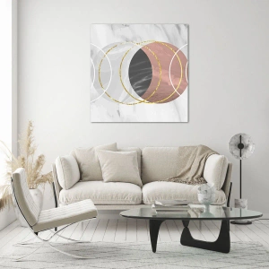 Impression sur verre - Image sur verre - Composition géométrique abstraite avec des cercles et des détails métalliques - 80x120cm - Musique des sphères - Décoration murale moderne pour le salon et la chambre ARTTOR