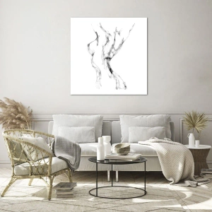 La peinture sur verre est faite sur un verre de 4 mm d'épaisseur. Les bords du verre ont une arête trapézoïdale mate. La tableau est sûr à l'utilisation et prêt à être accroché - il a des crochets en métal attachés à l'arrière du cadre et des entretoises en mousse permettant la régulation uniforme de la distance du tableau au mur.