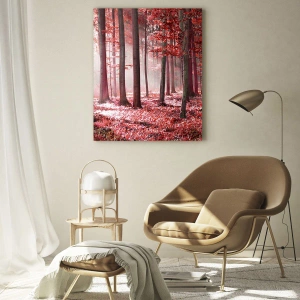 Impression sur verre - Image sur verre - Une forêt époustouflante aux teintes rouges avec des rayons de lumière pénétrant à travers les arbres - 160x50cm - Le rouge est tout aussi beau - Décoration murale moderne pour le salon et la chambre ARTTOR