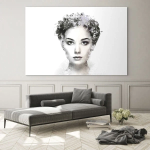 Le point central de la composition est un visage de femme à l'expression calme et concentrée. Son aspect unique attire l'attention, et l'ensemble allie harmonieusement beauté classique et forme de représentation moderne. La texture délicate et les couleurs monochromes de ce tableau créent une atmosphère de tranquillité et de charme subtil. C'est une solution idéale pour les amateurs d'art contemporain et de décorations minimalistes. C'est également un excellent choix pour ceux qui apprécient l'harmonie entre esthétique et message émotionnel. Ce tableau séduit par son silence et son élégance, créant une atmosphère de douceur et de concentration dans la pièce.