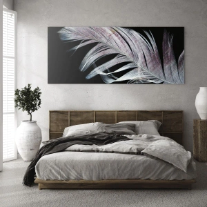 La peinture sur verre est faite sur un verre de 4 mm d'épaisseur. Les bords du verre ont une arête trapézoïdale mate. La tableau est sûr à l'utilisation et prêt à être accroché - il a des crochets en métal attachés à l'arrière du cadre et des entretoises en mousse permettant la régulation uniforme de la distance du tableau au mur.